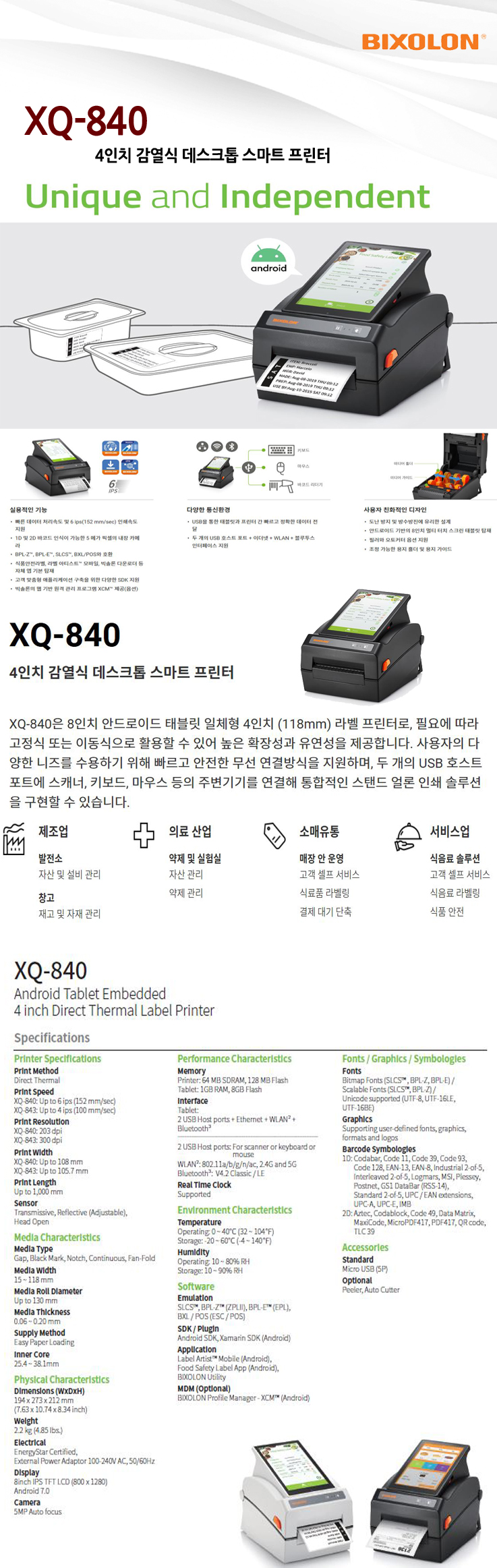 - 식품안전라벨, 라벨 아티스트™ 모바일, 빅솔론 다운로더 등 자체 앱 기본 탑재