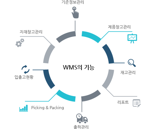 창고 내에서 일어나는 입고, 적재, 피킹(Picking), 출하와 같은 업무를 자동화시키고 작업자에게 실시간으로 재고 파악 업무를 처리하도록 할 수 있도록 지원.